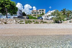 Vzdálená 30 m od domu, jemná oblázková s pozvolným vstupem do moře.