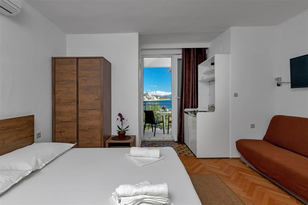 Mono 2+1 - jedna místnost s manželskou postelí s možností přistýlky pro 1 osobu (rozkládací lůžko), s minikuchyňkou, vlastním sociálním zařízením a klimatizací.